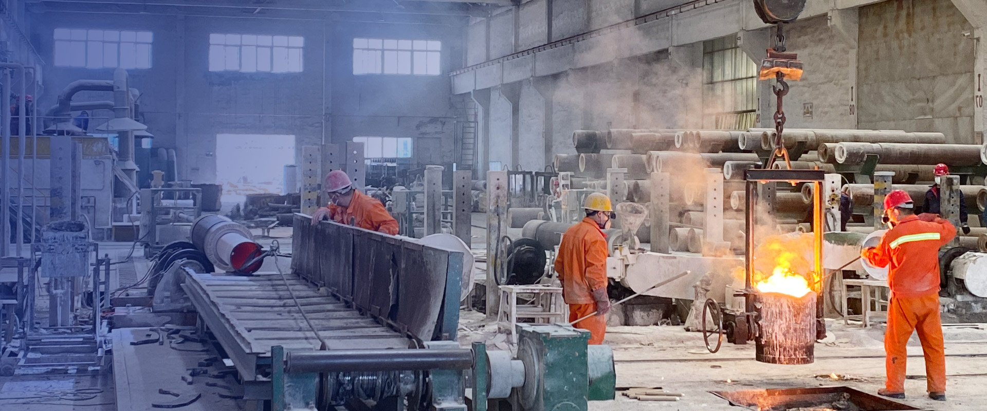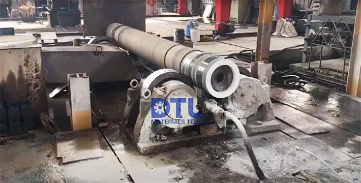 Centrifugal cast pipe dye penetrant testing The body of the sinking roller is produced using centrifugal casting technology. The picture shows that the sinking roller body is undergoing dye penetrant testing to detect defects that cannot be recognized by the naked eye, such as small cracks. Determine whether it is within the allowable range through professional standards in order to proceed with the next step of production and processing.
